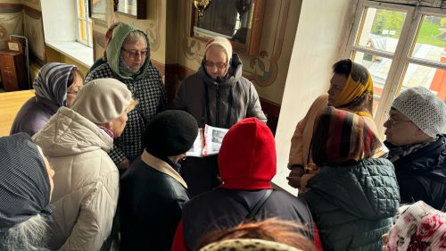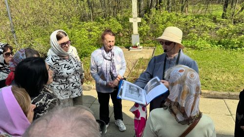 Экскурсовод рассказала историю храма, в каком году и на каком историческом месте был возведен, в чью честь он был освящен, и какая тяжелая судьба была у данного Храма во время Великой Отечественной Войны.