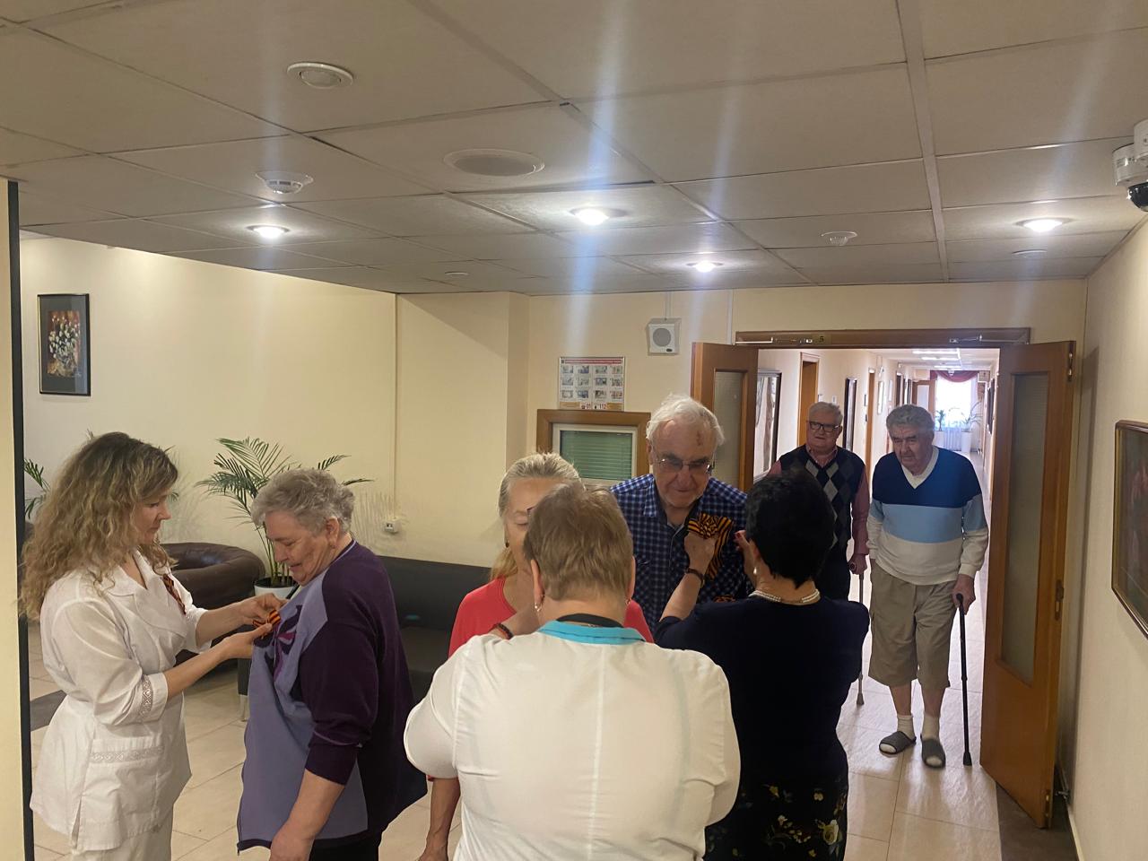 всем отдыхающим прикалывали Георгиевские ленточки, вручали праздничные открытки и поздравляли с