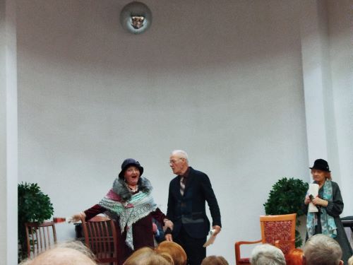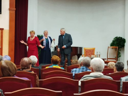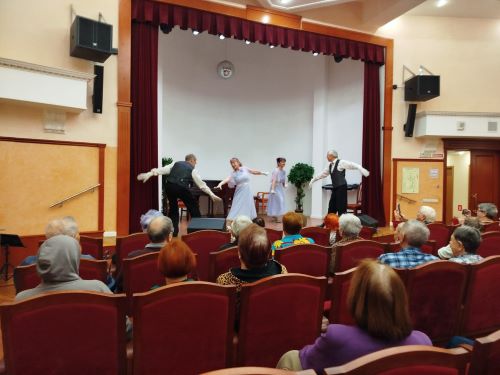Участники клуба создали непринужденную „чеховскую“ атмосферу во время своего выступления. При минимуме декораций и пространства, куда сложнее заинтересовать зрителя, но актерам-долголетам это прекрасно удалось. Сопровождал спектакли Ансамбль исторического бального танца «Свободное движение» - руководитель Альберт Верхоляк, с танцевальными номерами «Грация вальсов». Зрители тепло благодарили оба коллектива за доставленное удовольствие и положительные эмоции.